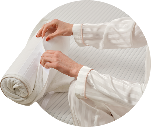 Abnehmbarer Bezug mit 32 % natürlicher Zellulose – weich, atmungsaktiv und pflegeleicht.