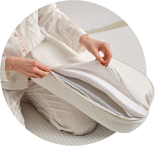 Dank seines einzigartigen Designs bietet Pillowe™ maximalen Komfort, reduziert den Kontakt des Gesichts mit dem Kissen und hilft, Schlaf-Falten und morgendlichen Schwellungen vorzubeugen.
