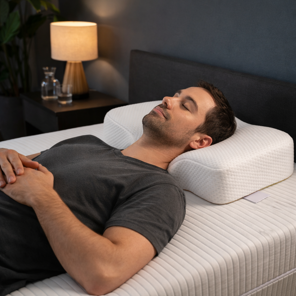 Pillowe™ Anti-Schnarch-Kissen unterstützt Kopf und Nacken in einer ergonomisch günstigen Position. Die spezielle Form fördert eine stabile Schlafhaltung und kann eine freie Atmung begünstigen.